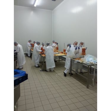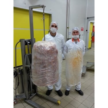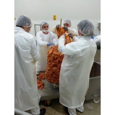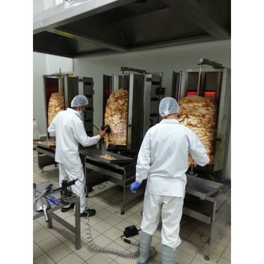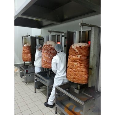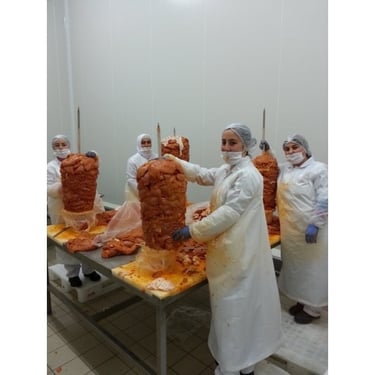Baton ve pişmiş piliç döner üretimi ile personelin uzmanlık seviyesine çıkarılması... Resimlerde görülen 200 kg'lık dönerler, özellikle ters konik biçimde yerleştirilmiştir. Aksi halde, döner yarıya indiğinde çökme riski ortaya çıkacaktır. Dönerin dengeli bir şekilde pişirilip kesilmesini sağlamak amacıyla ters konik yerleştirme tercih edilmiştir. Tabi bu sadece manuel kesimler için geçerlidir, robot kesimlerde 500 - 600 kiloluk dönerleri kalıba basarak şoklamaktayız.