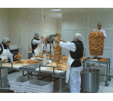 Piliç döner reçete proses,vasıfsız personelin usta olarak eğitimi.Pişmiş döner ünitesi kuruluşu ve personel eğitimi.